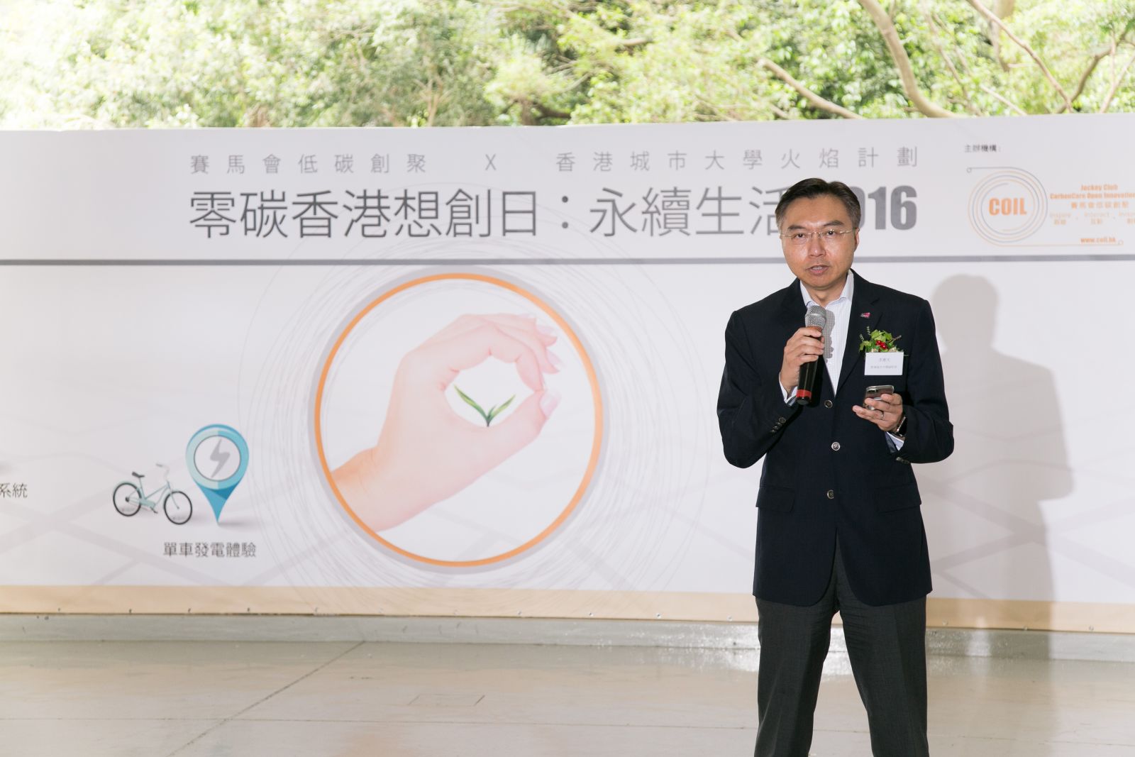 During the opening ceremony, Mr Lee Chi Ming, representative of JC COIL and Board Chairman of CarbonCare InnoLab (CCIL), gave a brief review on the Hong Kong NGO and social business delegation led by CCIL to the UN Climate Change Summit held in Paris (known as COP21) last December. The delegates witnessed the birth of the historic Paris Agreement. The opening ceremony was also officiated by Mr Sunny Lee Wai-kwong, Vice-President (Administration) of the City University of Hong Kong. In his speech, Mr Lee said the City University has continually promoted sustainable development and low-carbon living to the education sector and the society at large. City U has taken the lead in low-carbon building design and campus operation. It was also the first local university to implement food waste management by recycling canteen food waste into fish feed. Mr Lee looked forward to seeing everyone working together to make ‘Zero-carbon Hong Kong’ possible.