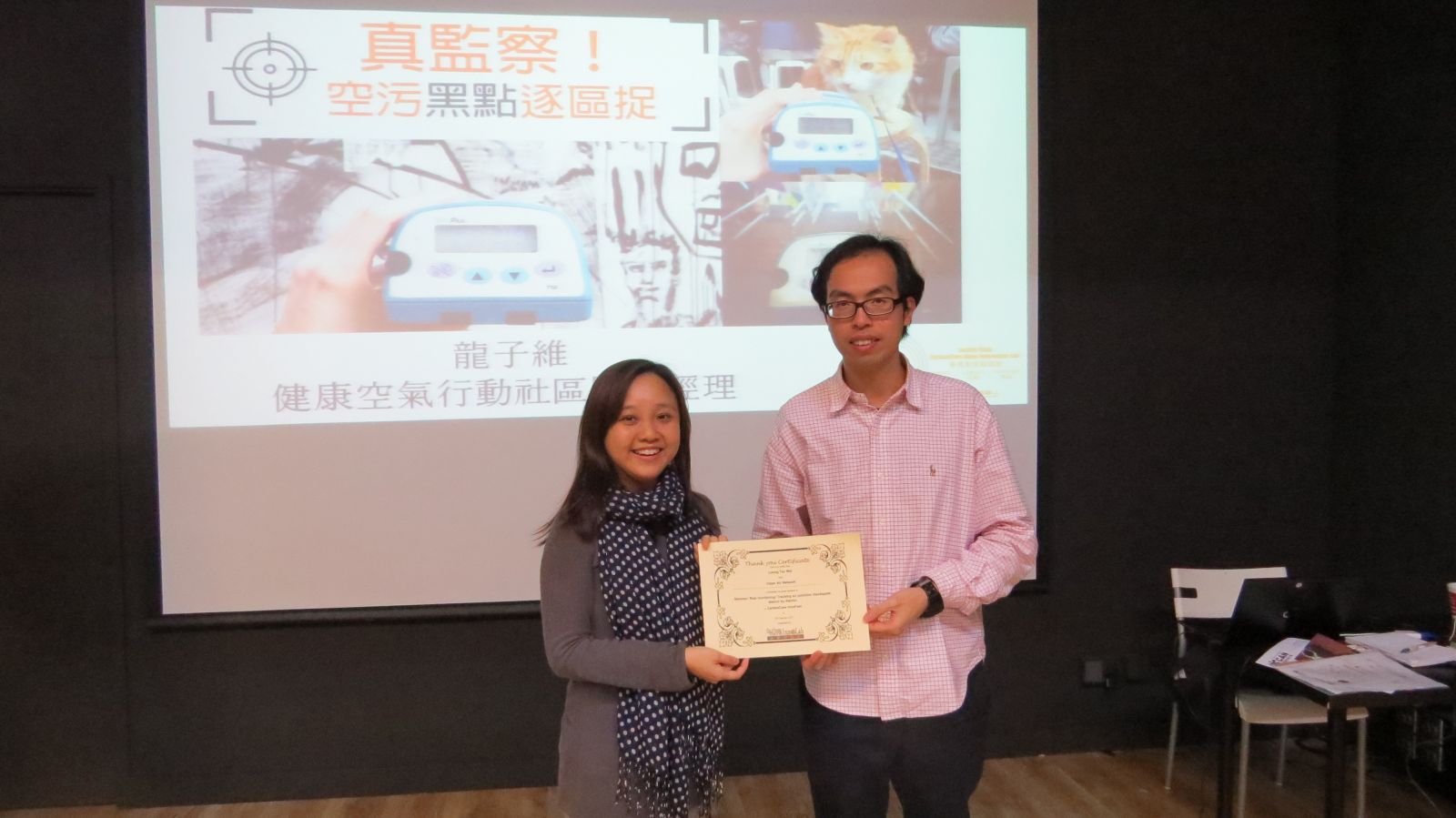 In the United States, the Environmental Protection Agency teaches students of grade 5 to grade12 how to make air quality monitoring devices by themselves. It is never too late for Hong Kong to start taking action. After Loong’s sharing, the participants divided themselves into several groups and discussed how to promote a community air pollution monitoring scheme in Hong Kong. As participants believed that there was a lack of public awareness, they suggested Hong Kong to follow the example of the US and to start work from education. The academia should be encouraged to develop air quality monitoring devices, which can be creatively applied to large public events such as the marathon, firework displays and cycling tours for promotion purpose.