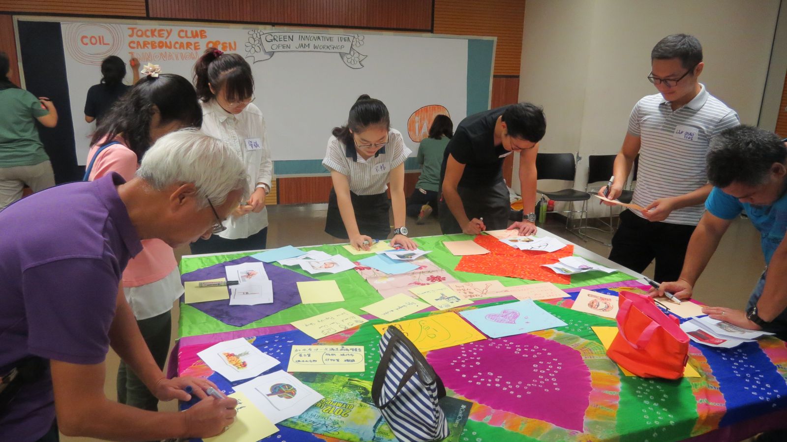 “Green Innovative Ideas Open Jam Workshop” is a key event of Jockey Club CarbonCare Open Innovation Lab (JC COIL). It aims to lead participants into the real experience of creative thinking, and to meet like-minded people in order to “jam” green ideas together.