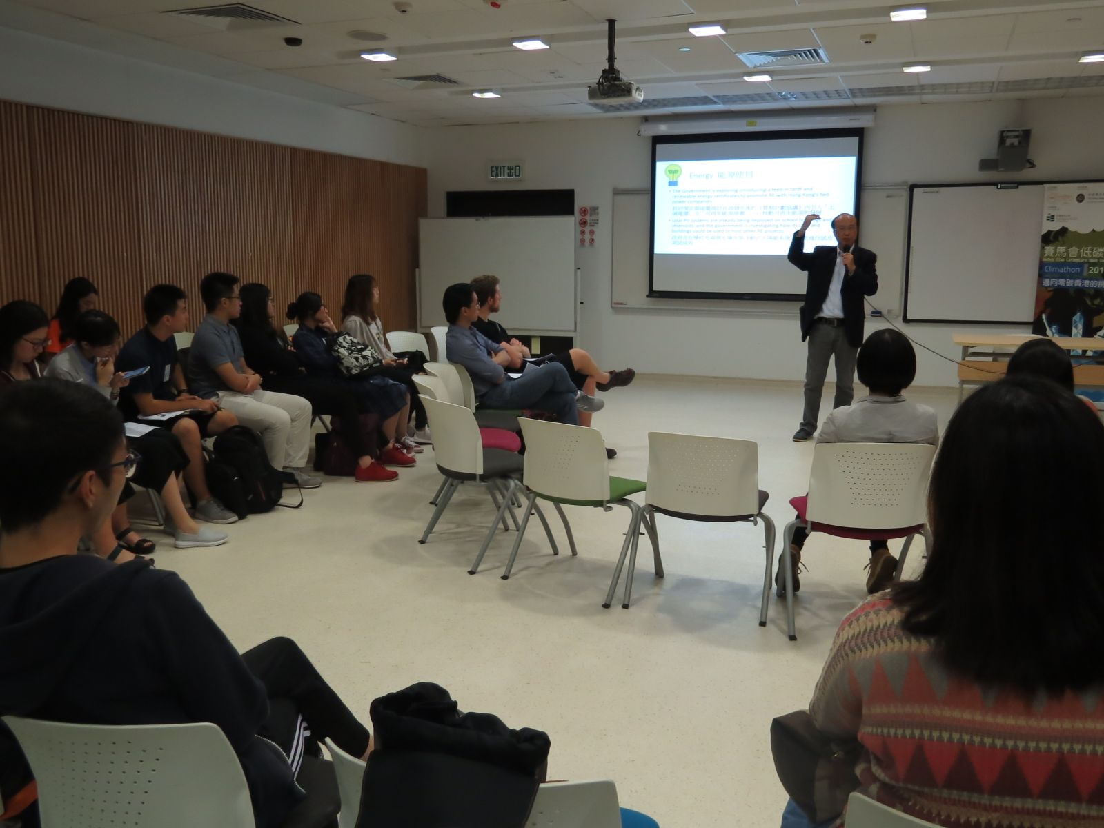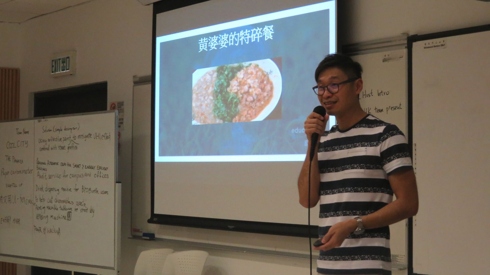 After the Opening Ceremony, participants moved to the activity room to continue with the next activity. Ir Albert Lai briefed on the four climate challenges the participants have to solve. Then, participants formed and built teams through Asset Mapping game, idea pitching and deep connection questions. Over the night, more than thirty participants grouped themselves into seven teams to discuss possible solutions to climate issues facing Hong Kong and to get themselves ready for the general sharing in the next afternoon. Apart from group discussion, the organizers also arranged various sessions for participants, including light workouts, visit to the green facilities of the university campus, Briefing on pitching skills and video dialogue with five cities, including Zurich, Busan, Venice, Suzhou and Washington. These five cities had similar climate challenges with Hong Kong. Participants from Hong Kong and these cities shared their initial solution to the climate challenges they chose with the others, and commented on each others’ ideas. At the briefing pitching skill section, Mr Larry Li, Talent Development Manager of Education for Good, briefed participants pitching skills using interesting examples.