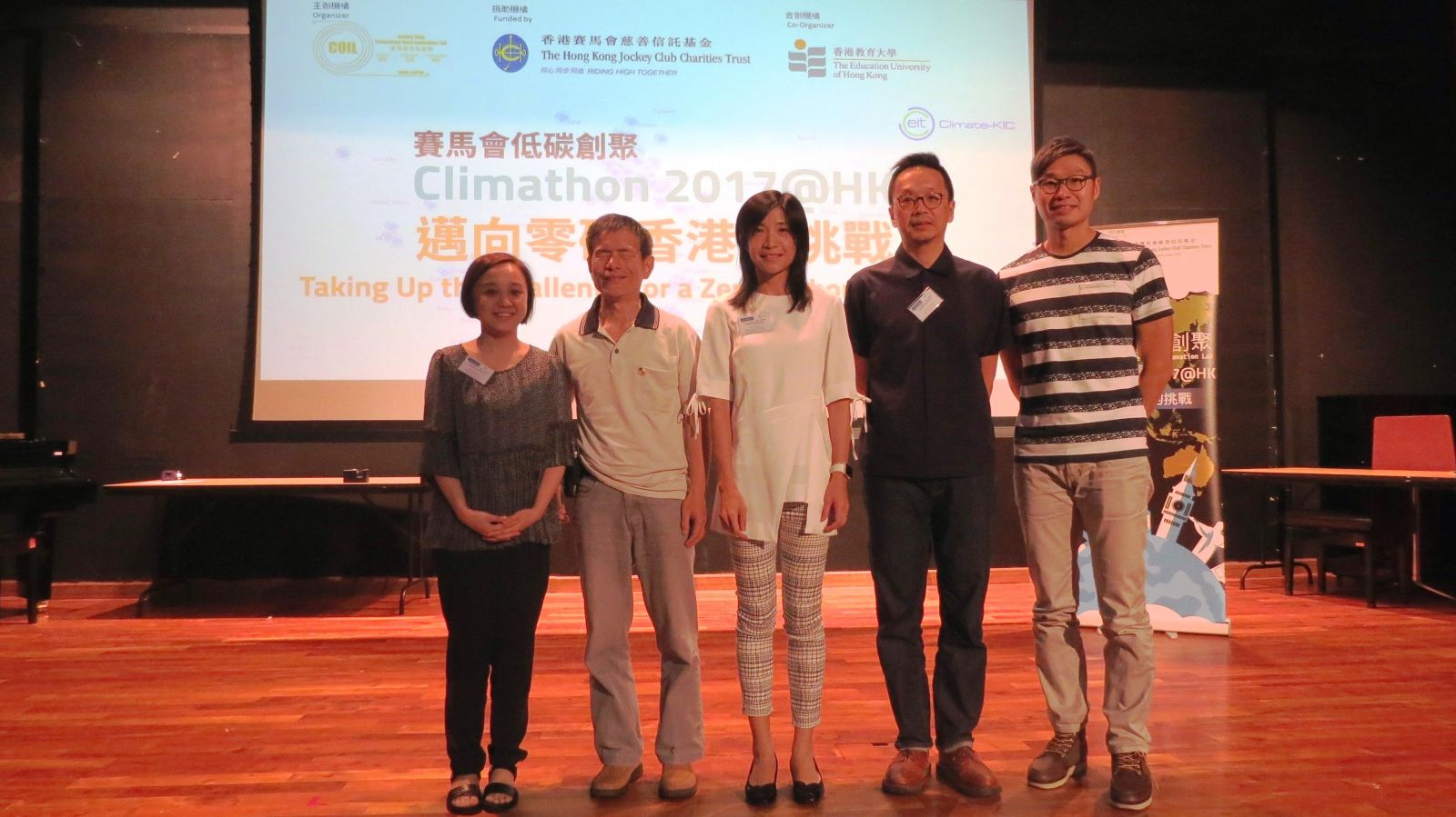 The Closing Ceremony of “Climathon 2017 Hong Kong” was held at 4 pm on 28 October, which coincided with the finale of the campus-wide environmental programme “Take it Simple” initiated by the Education University of Hong Kong. At the closing ceremony, the winning team was awarded the grand prize of HK$4,000 for project development by Ms Vivian Lee, Senior Charities Manager of The Hong Kong Jockey Club. The team’s suggestion will be submitted to Climate-KIC as a reference for other cities. Mr Chong Chan Yau, Co-Founder and Advisor of CaronCare InnoLab and Dr Yu Kar Ming, Dean of Students of the Education University of Hong Kong both gave a closing remark. Mr Chong Chan Yau praised the teams for their innovative ideas and their multiplicity. He regarded this occasion as the starting point for future deliberations. He encouraged everyone to turn their green ideas into action, as a commitment to make zero-carbon Hong Kong a reality. In his concluding remark for the “Take it Simple” programme, Dr Yu Kar Ming reminded everyone that excessive consumption comes with a heavy price and he encouraged participants and students to continue with a “simple living” lifestyle.