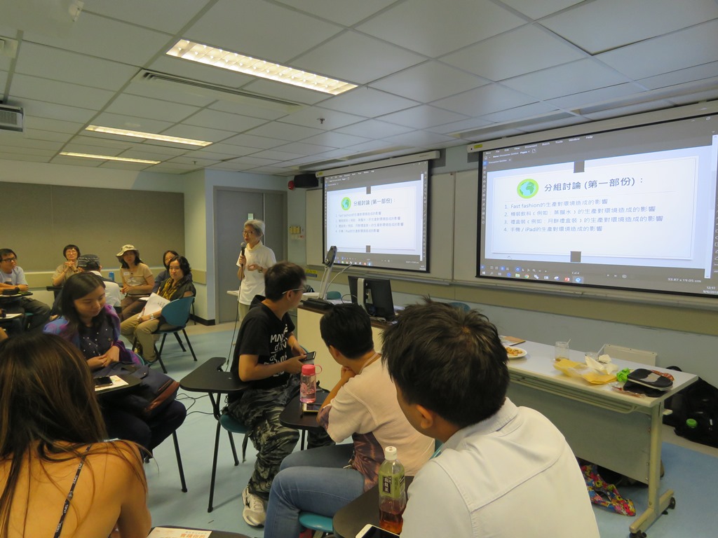 The staff explained the operation of the landfill, but the more important question was how to solve the problem that our landfills would be full soon. Apart from building incinerators, what else can we do? After the tour, participants went to the City University of Hong Kong to continue with the discussion. Under Christine’s guidance, the participants brainstormed on how fast fashion, bottled drinks, gift packaging and cell phone products affect our environment. Then Christine showed everyone Hong Kong’s carbon emissions data in relation to our daily living, explaining how consumerism has led to global warming and how Hong Kong is being affected. The issue of climate justice (ie. we consume, people from poor countries suffer) was also brought up and Christine reminded us how consumer behaviour could affect the environment, and offered tips on carbon reduction. She hoped that everyone could start changing his or her lifestyle and play a part in reducing waste and carbon emissions.